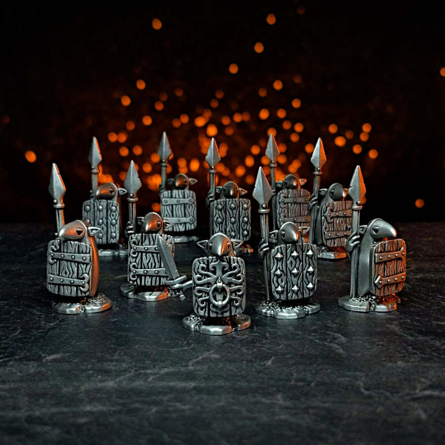 Four unique cloth goblin figures and ten interchangeable shield designs.